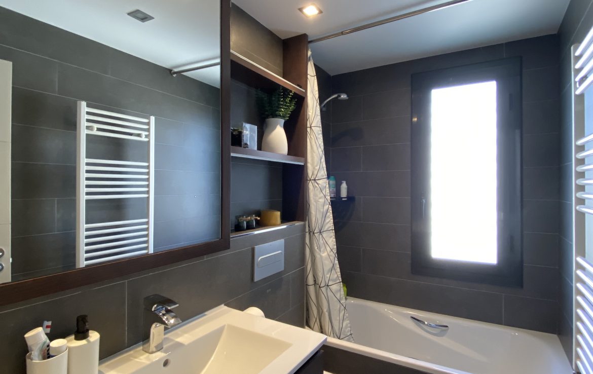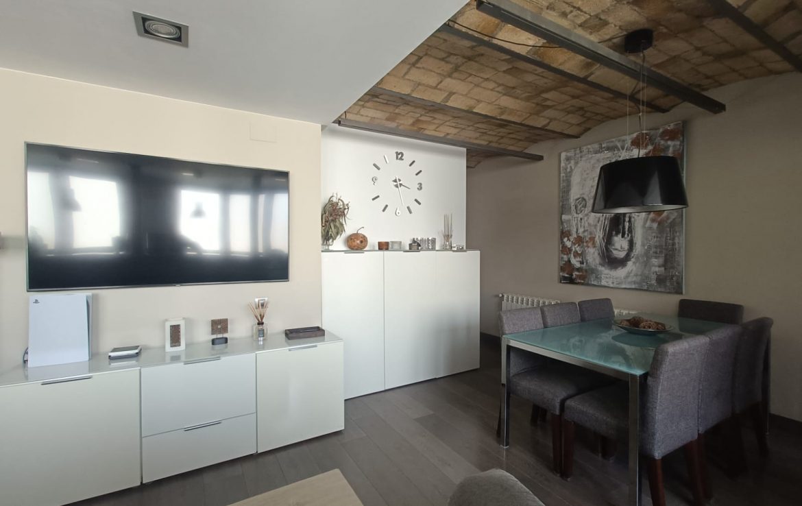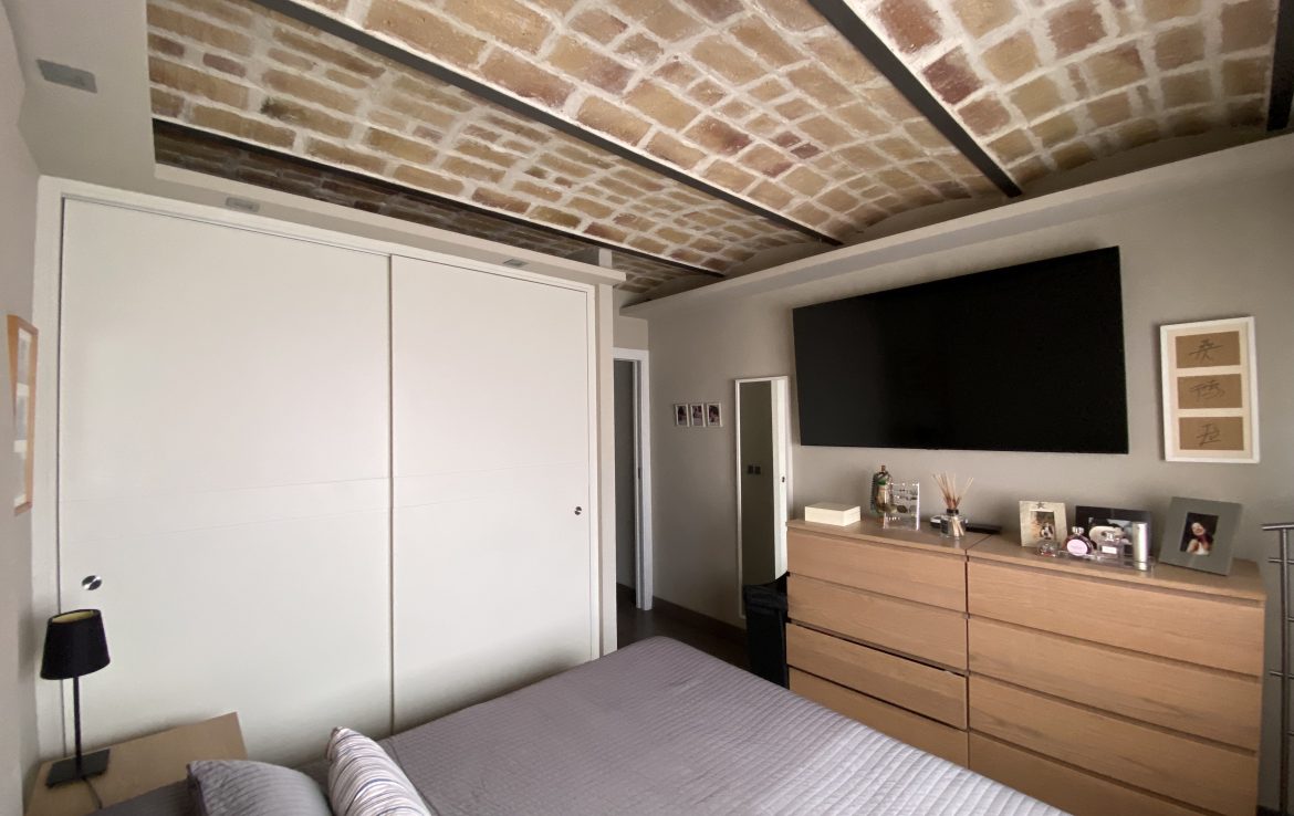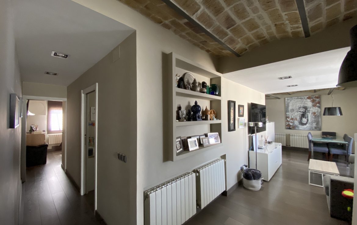La vivienda íntegramente reformada hace pocos años, destaca por sus acabados de calidad: suelos de parquet, baños en porcelánico, carpinterías de aluminio, calefacción por radiadores y aire acondicionado frío/calor… en la rehabilitación se puso especial énfasis en recuperar los elementos originales de la finca como los techos con bóveda catalana aportando personalidad y tradición a los espacios.