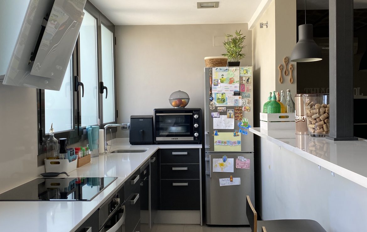 El espacio principal se concibe como una amplia estancia diáfana donde cocina, salón y comedor conviven en perfecta armonía, generando un ambiente contemporáneo, luminoso y acogedor. La zona de noche se compone de 3 habitaciones (2 dobles y 1 individual), todas con armarios empotrados, y 2 baños completos, diseñados para ofrecer funcionalidad y confort. En la entrada encontramos una zona polivalente utilizada como espacio de trabajo.